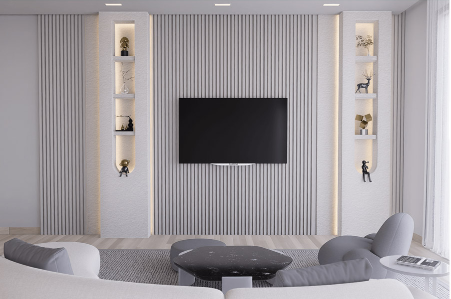 پس از تحلیل اولیه، نوبت به طراحی مفهومی میرسد. اینجا همان جایی است که خلاقیت تیم طراحی داخلی وارد میدان میشود. انتخاب متریال، رنگ، بافت و سبک کلی تی وی وال باید با هویت فضا همخوانی داشته باشد. در بازسازی خانههای مدرن، معمولاً از ترکیب چوب، امدیاف، ماربل شیت، سنگ اسلب یا بتن اکسپوز استفاده میشود. در مقابل، در پروژههای بازسازی اداری، استفاده از پنلهای سادهتر با خطوط مینیمال و نورپردازی خطی رایجتر است.
